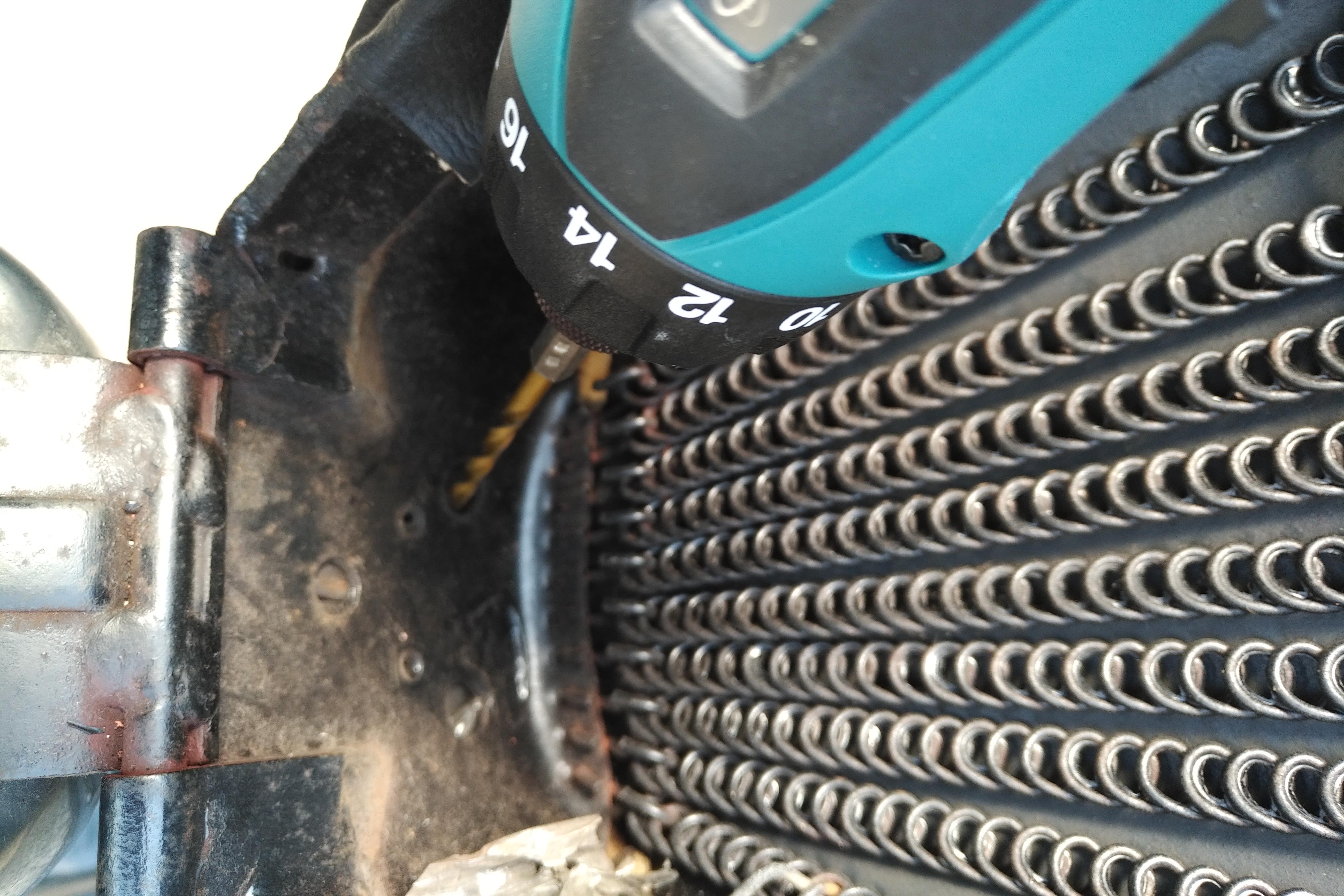 そこでこの穴を利用し,ドリルでシート外皮に穴をあけ,買ってきたビスで止めておくことにしました.